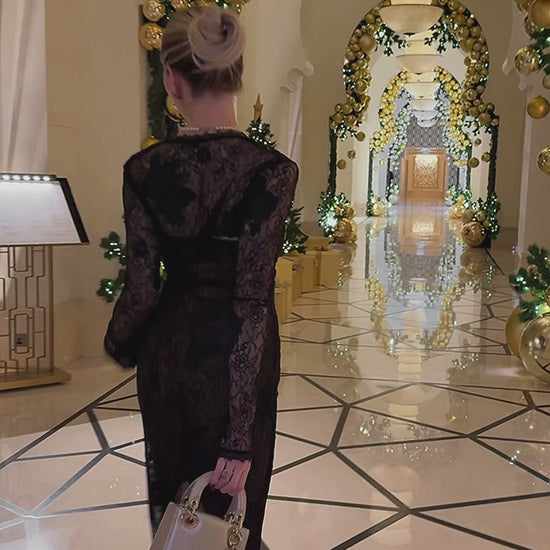 A statement of refined sensuality, the Estelle dress is crafted in intricate full lace, designed to sculpt the silhouette while remaining effortlessly elegant. Fully lined through the body for a non-transparent, smooth finish, it offers comfort without compromising allure. The structured bust features built-in padded cups for natural support and shape. Finished with a removable lace cover-up bolero, this piece allows for versatile styling—from classic elegance to elevated drama.